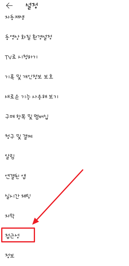 설정 관련 메뉴 중 아래로 내려가면 보이는 접근성을 선택합니다.